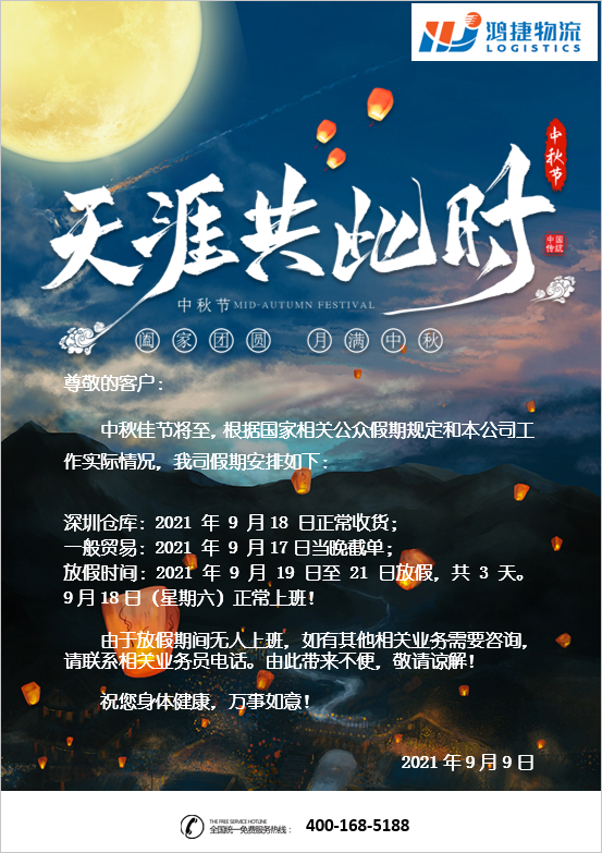 2021年鴻捷物流中(zhōng)秋節放(fàng)假通知(zhī)